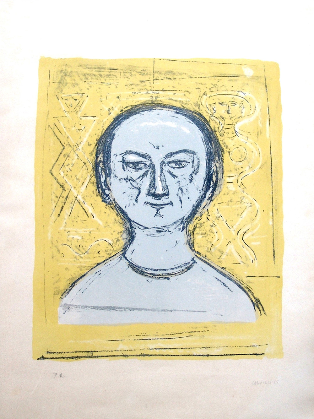Massimo Campigli 1895, Berlino (Germania) - 1971, Saint-Tropez (Francia) - [Italia] senza titolo litografia 70x50 cm 1965 es. p.a.; firma dell’artista in basso a destra; opera con cornice autentica sul retro di Nicola Campigli