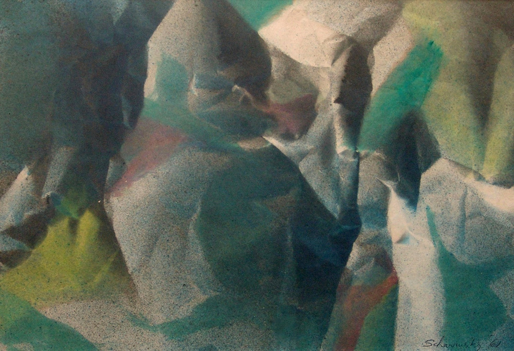 Xanti Schawinsky 1904, Basilea (Svizzera) - 1979, Locarno (Svizzera) - [Svizzera] senza titolo tecnica mista su carta 33x47 cm 1961 firma dell'artista in basso a destra e timbro sul retro della Galleria Spazzapan di Stresa; opera con cornice certificato di autenticità Picenum