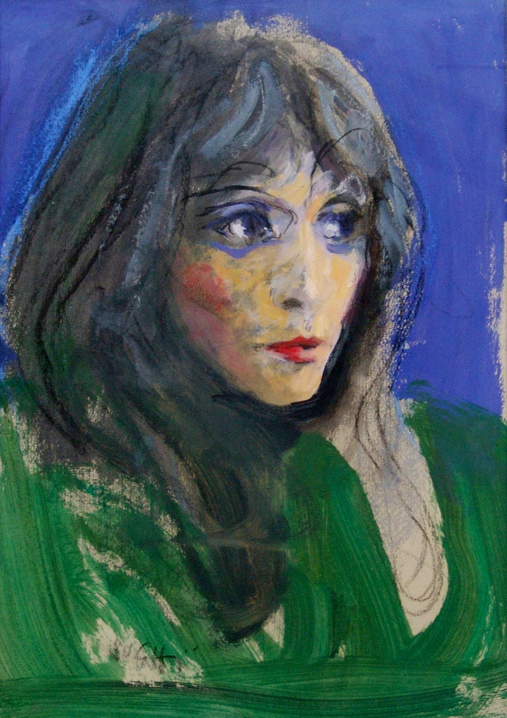 Alberto Sughi 1928, Cesena (Fc) - 2012, Bologna (Bo) - [Italia] Ritratto di ragazza tempera su cartoncino 50x35 cm 1988 firma dell’artista in basso a sinistra; opera con cornice certificato di autenticità dell'artista su fotografia; certificato di autenticità della Meeting Art di Vercelli; certificato di autenticità Telemarket