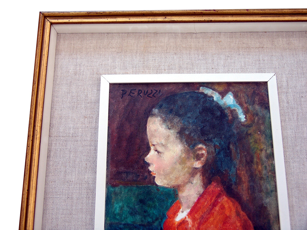 Cesare Peruzzi 1894, Montelupone (Mc) - 1995, Recanati (Mc) - [Italia] Bambina olio su cartone telato 24x18 cm firma dell’artista in alto a sinistra; opera con cornice; provenienza eredi dell'artista certificato di autenticità Picenum