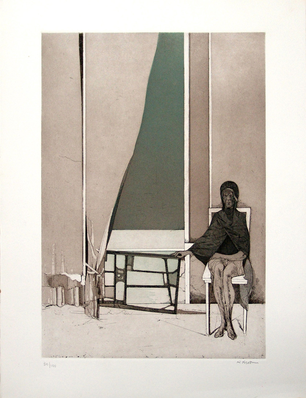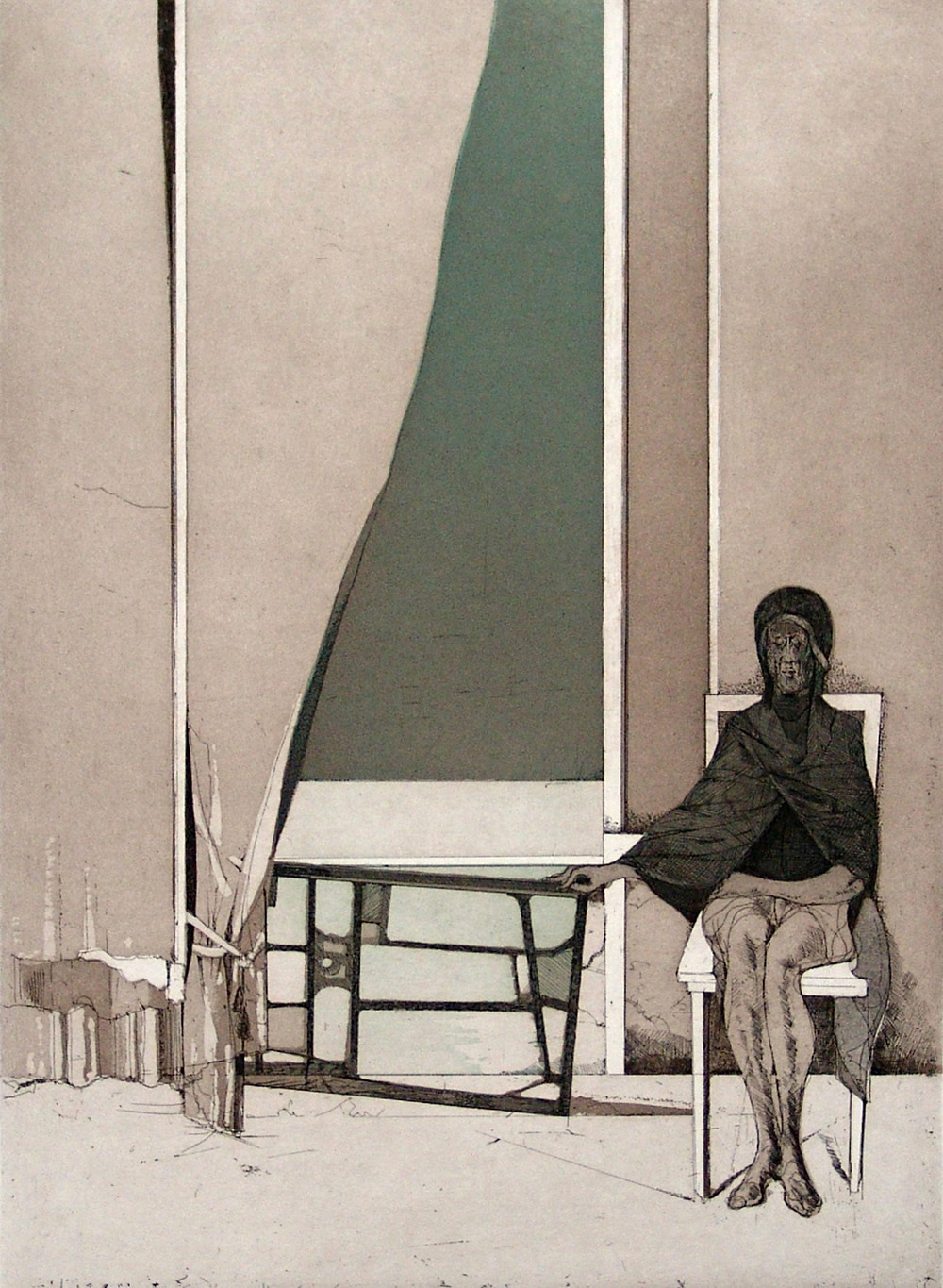 Karl Plattner 1919, Malles Venosta (Bz) - 1986, Milano (Mi) - [Italia] Interno esterno acquaforte acquatinta 60,5x45 cm 1976 es. 30/100; firma dell’artista in basso a destra certificato di autenticità Picenum; opera pubblicata in "Karl Plattner - L'opera grafica" Tappeiner Casa Editrice, 1999