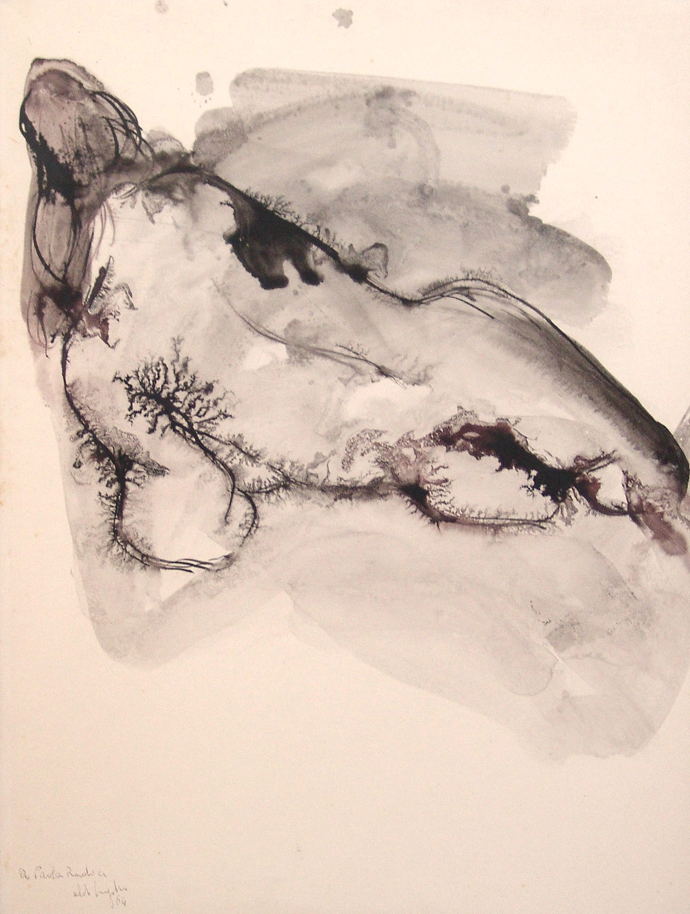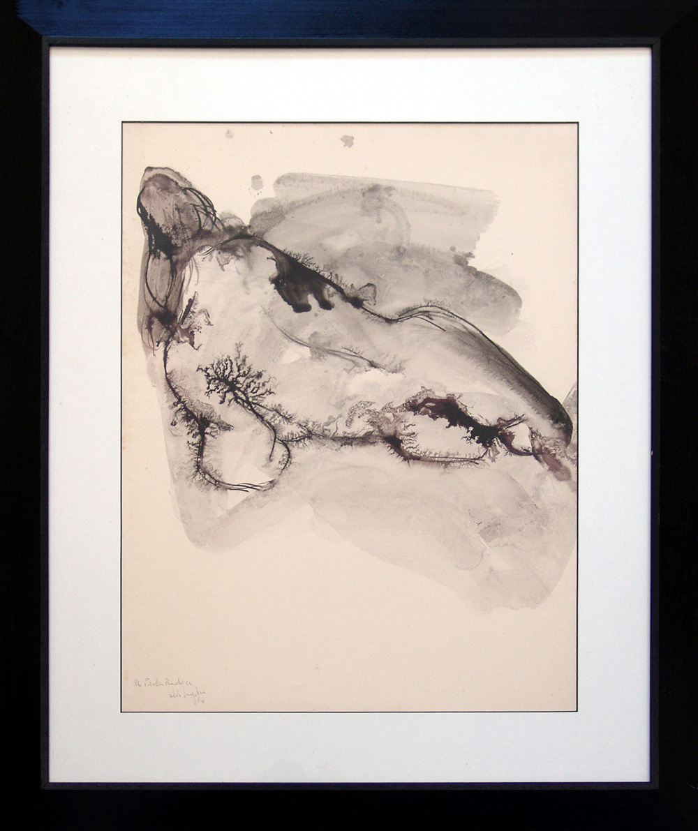 Aldo Bergolli 1916, Legnano (Mi) - 1972, Milano (Mi) - [Italia] Nudo tecnica mista su carta 65x50 cm 1964 firma dell’artista in basso a sinistra; opera con cornice certificato di autenticità della Meeting Art di Vercelli