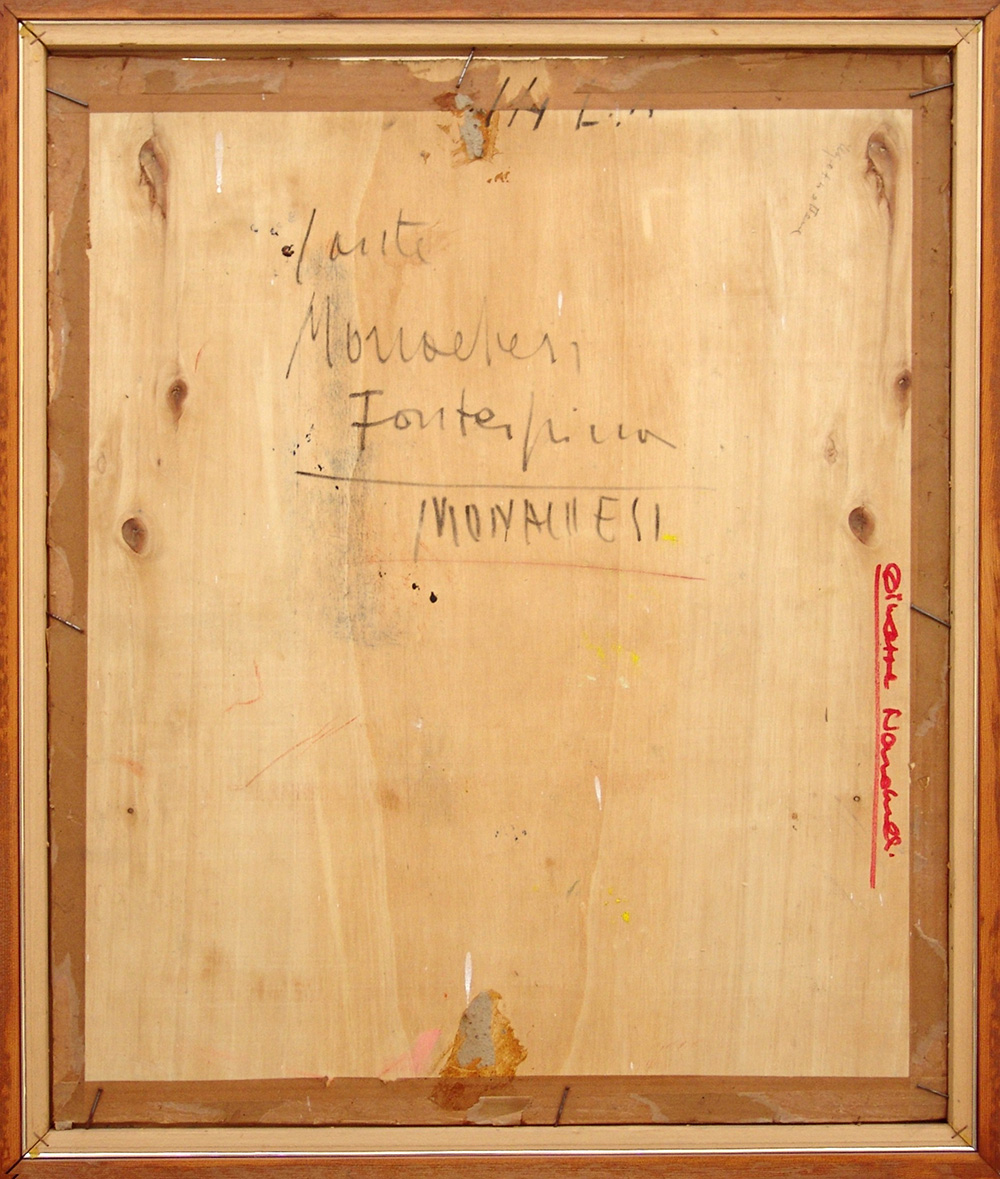 Sante Monachesi 1910, Macerata (Mc) - 1991, Roma (Rm) - [Italia] Fontespina olio su tavola 60x50 cm c. 1970 firma dell’artista in basso a destra e sul retro; opera con cornice certificato di autenticità Picenum