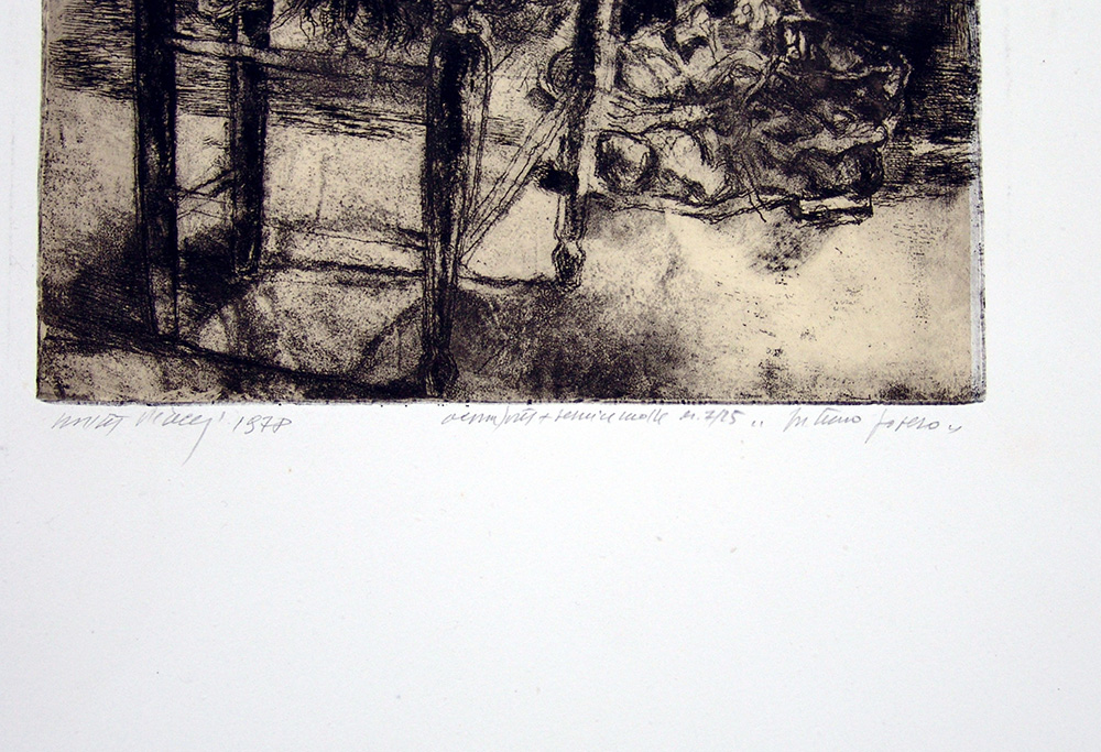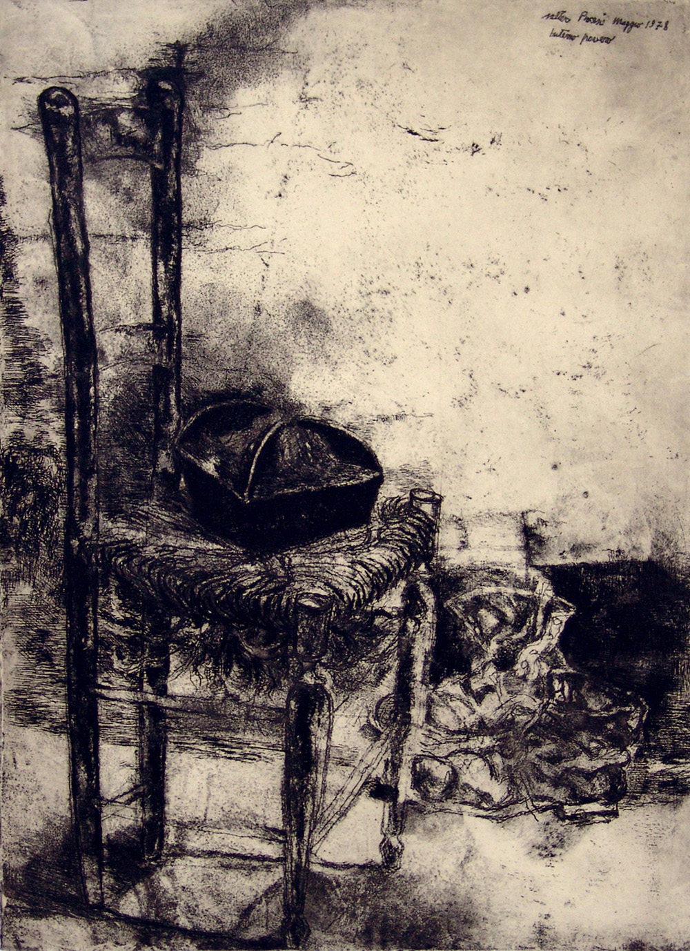 Walter Piacesi 1929, Ascoli Piceno (Ap) - [Italia] Interno povero acquaforte 55,5x40,5 cm 1978 es. 7/25; firma dell’artista in basso a sinistra certificato di autenticità Picenum