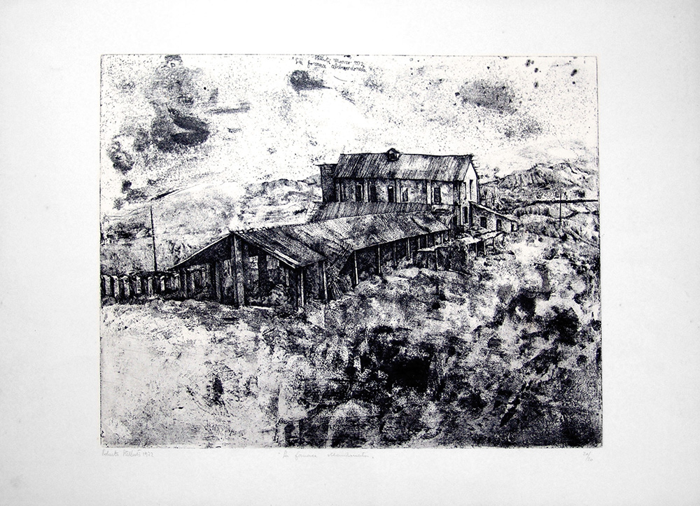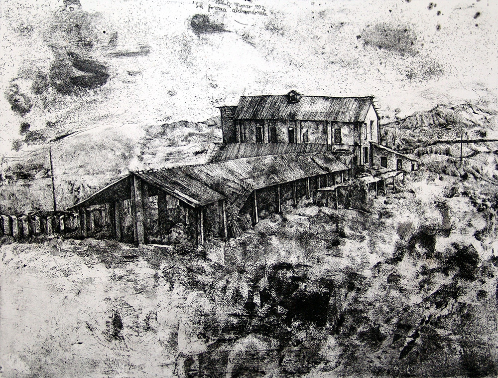 Roberto Stelluti 1951, Fabriano (An) - [Italia] La fornace abbandonata acquaforte 49,5x70 cm 1972 es. 20/20; firma dell'artista in basso a sinistra certificato di autenticità Picenum