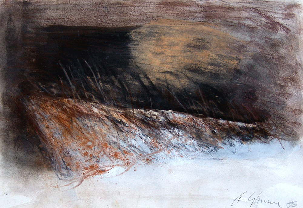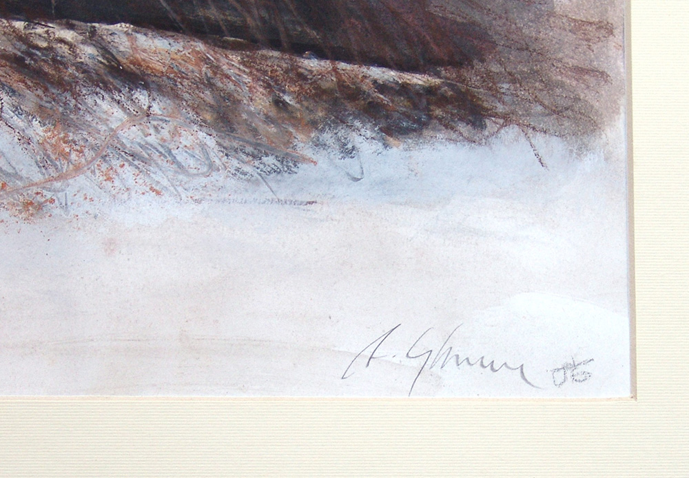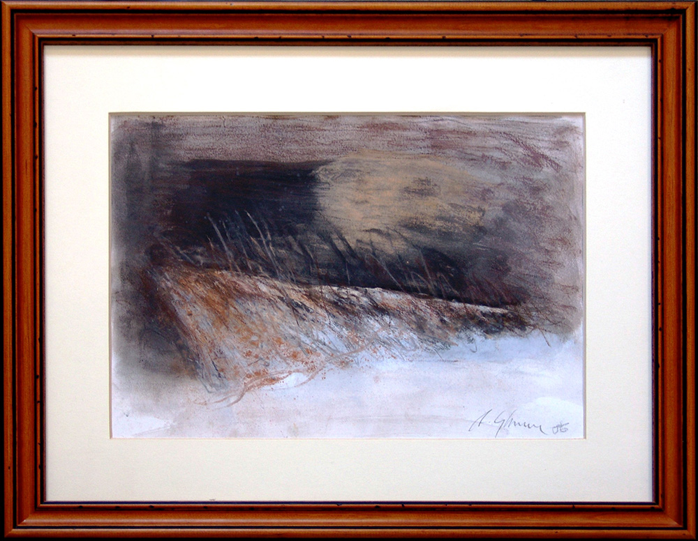 Alberto Ghinzani 1939, Valle Lomellina (Pv) - 2015, Milano (Mi) - [Italia] Brughiera tecnica mista su carta 23x33,5 cm 1986 firma dell'artista in basso a destra; opera con cornice certificato di autenticità della Edizioni Bora di Bologna