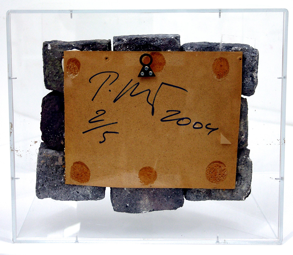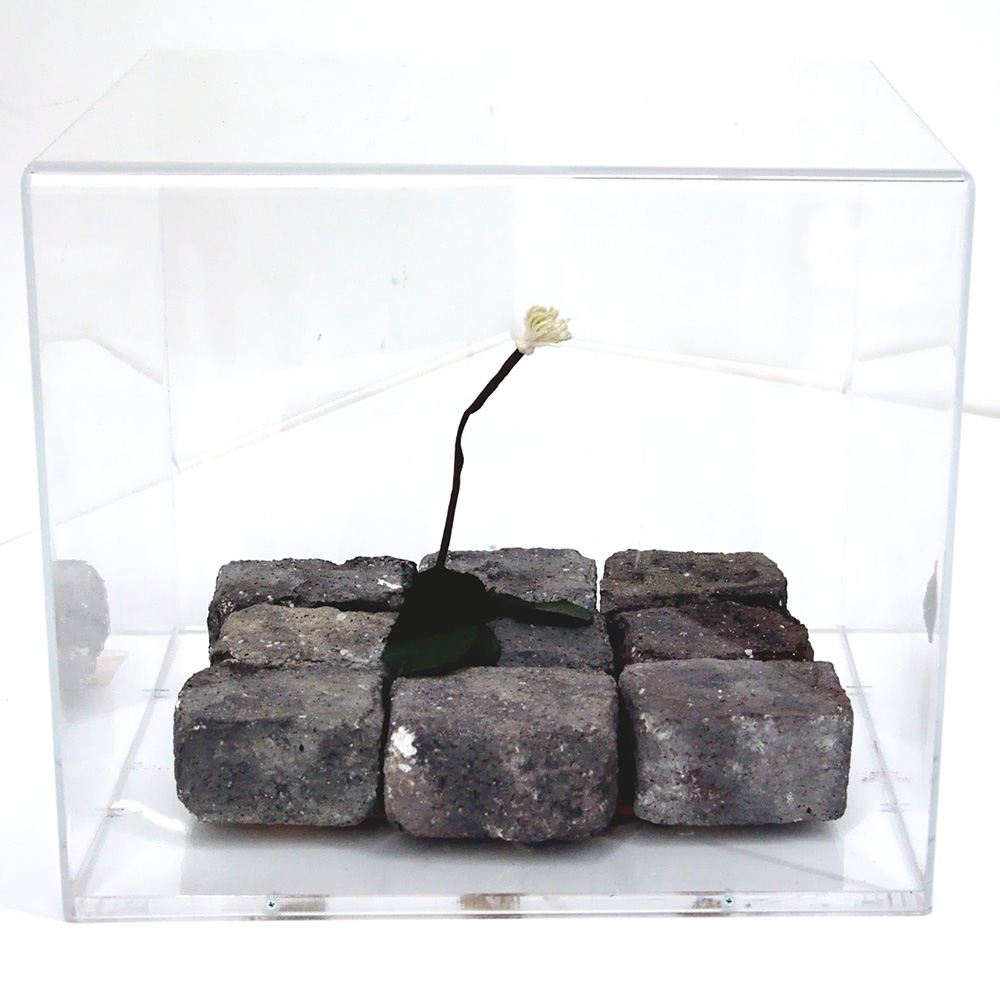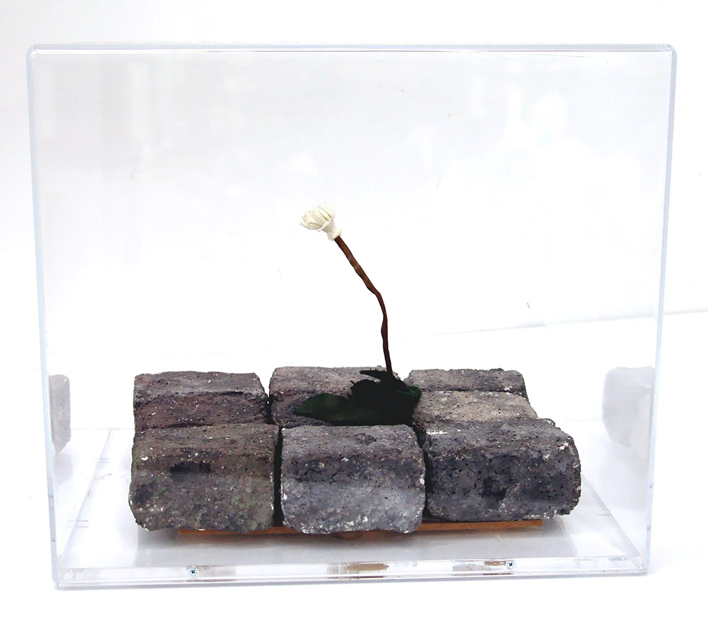 Peter Rosel 1966, Rockenhausen - [Germania] Gänseblümchen assemblaggio di materiali 21x27x15 cm 2004 es. 2/5; firma dell'artista sulla base; opera contenuta in teca di plexiglas certificato di autenticità della Galleria Analix Forever di Ginevra