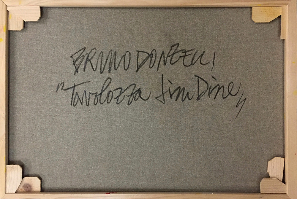 Bruno Donzelli 1941, Napoli (Na) - [Italia] Tavolozza Jim Dine olio su tela 50x70 cm 2011 firma dell’artista in basso a destra e sul retro; opera con cornice certificato di autenticità dell'artista su fotografia