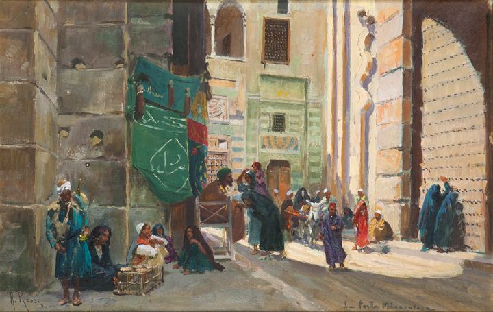 ROSSI ALBERTO Torino 1858 - 1936 "La porta miracolosa" 28x42 olio su...