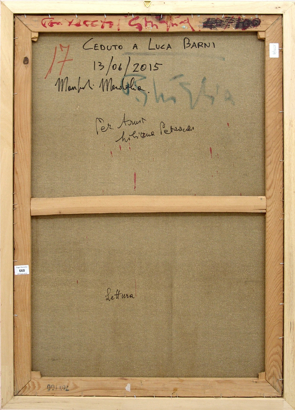 Paulo Ghiglia 1905, Firenze (Fi) - 1979, Roma (Rm) - [Italia] Lettura olio su tela 100x75 cm 1934 firma dell’artista in alto a destra e sul retro; opera con cornice certificato di autenticità della Pandolfini di Firenze