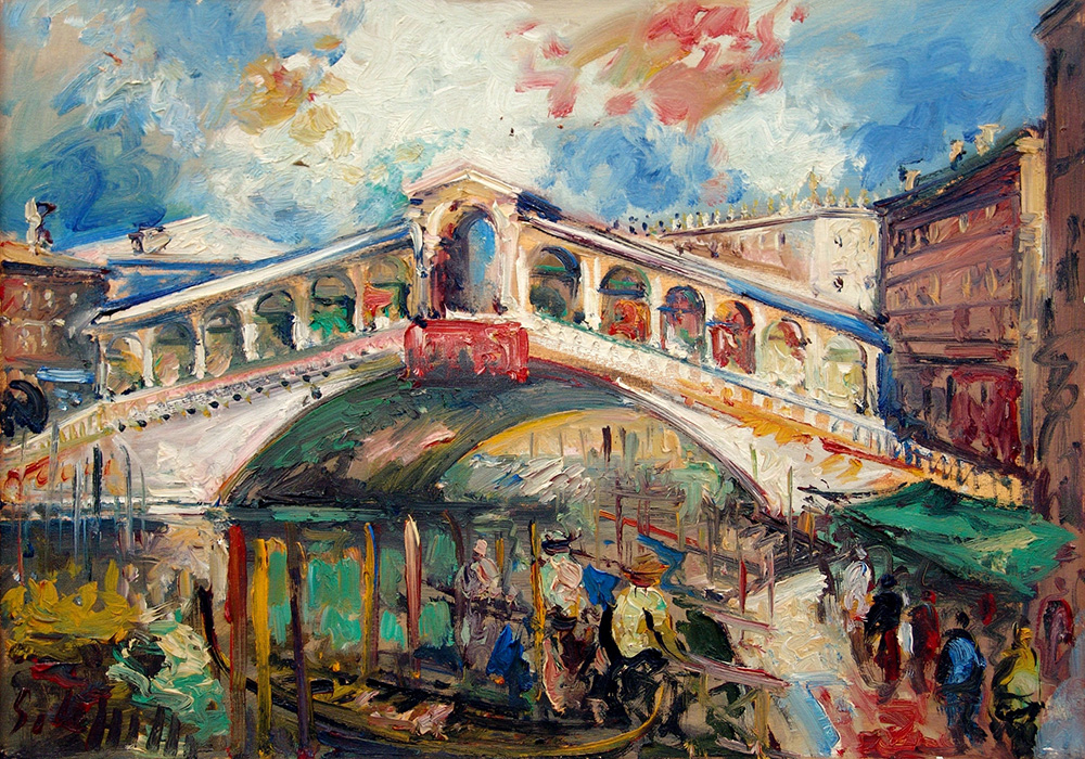 Emanuele Cappello 1936, Vittoria (Rg) - [Italia] Ponte di Rialto olio su tela...