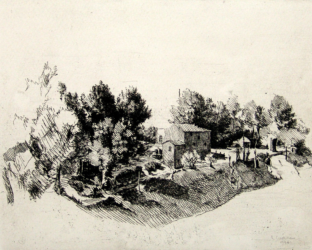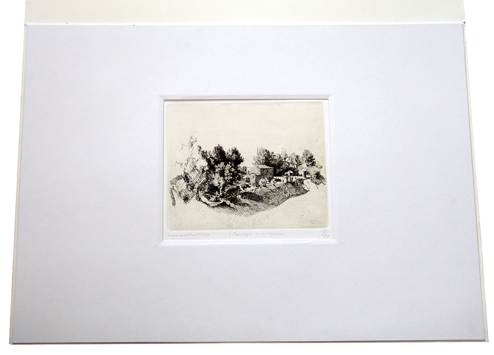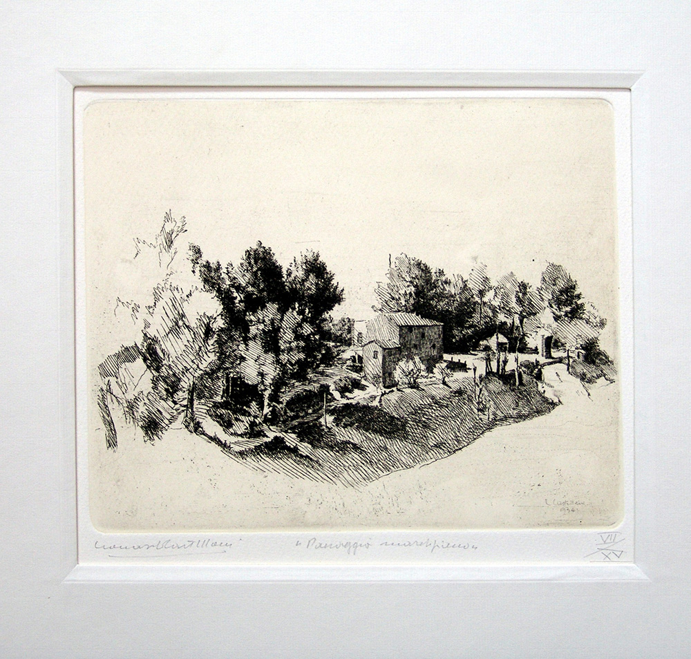 Leonardo Castellani 1896, Faenza (Ra) - 1984, Urbino (Pu) - [Italia] Paesaggio marchigiano acquaforte 50x70 cm 1934 es. VII/XV; firma dell'artista in basso a sinistra; f.to lastra 20x24,5 cm certificato di autenticità Picenum
