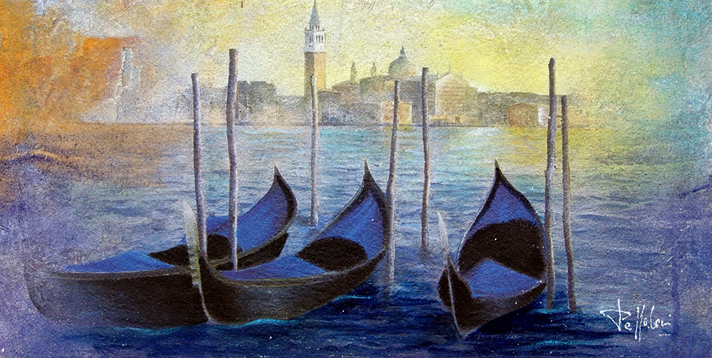 Alvaro Peppoloni 1951, Spello (Pg) - [Italia] Venezia retouche su tavola 25x50 cm 2016 firma dell’artista in basso a destra e sul retro certificato di autenticità Picenum