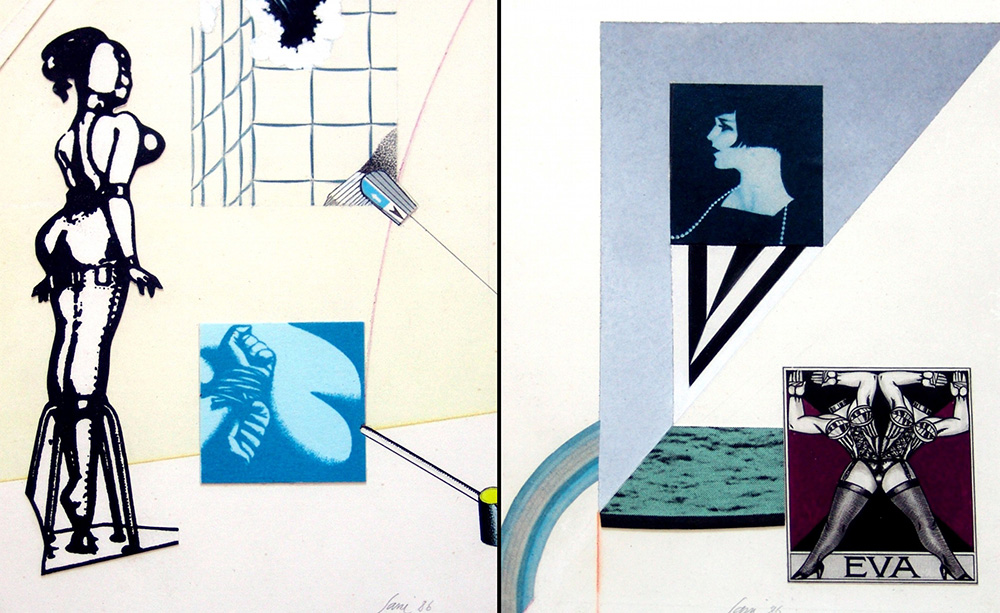 Sergio Sarri 1938, Torino (To) - [Italia] F. Léger a Hollywood, Le meravigliose avventure di F. Léger (lotto unico con due opere) tecnica mista e collage su carta 22x18 cm cad. 1986 firma dell’artista in basso; opere con cornice certificato di autenticità Picenum
