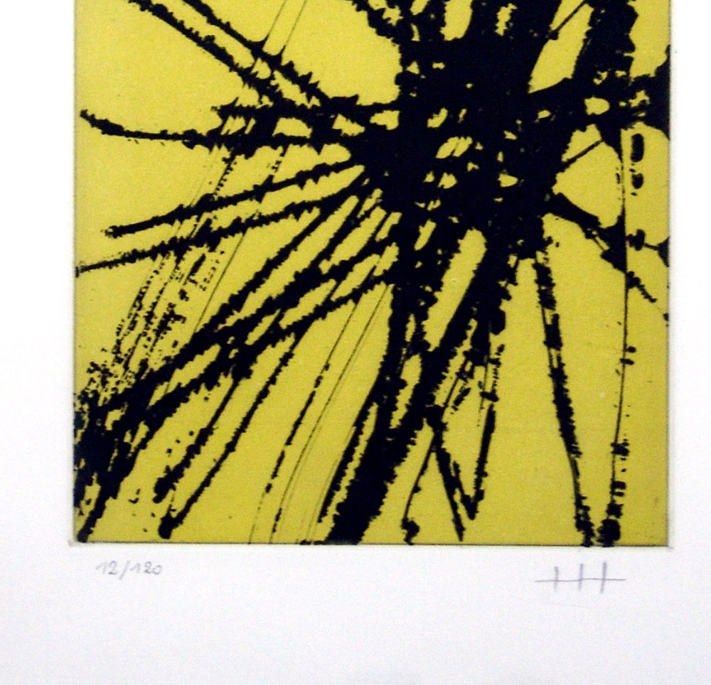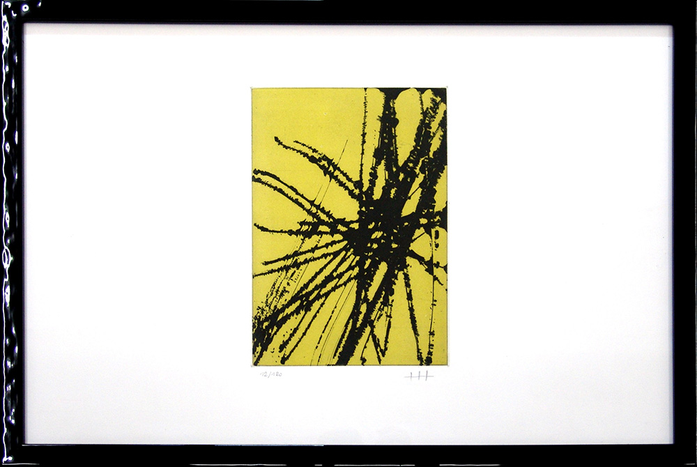 Hans Hartung 1904, Lipsia (Germania) - 1989, Antibes (Francia) - [Germania] senza titolo acquaforte acquatinta 37x56 cm 1978 es. 12/120; firma dell'artista in basso a destra; opera con cornice certificato di autenticità della Galleria Savioli Arte di Riccione