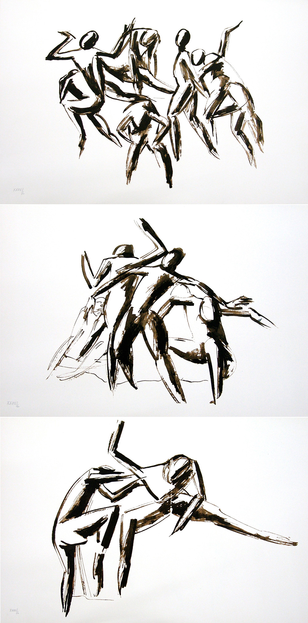 Pericle Fazzini 1913, Grottammare (Ap) - 1987, Roma (Rm) - [Italia] Danzatori (lotto unico con tre opere) serigrafia 44x64 cm cad. 1981 es. XXVII/L; cartella con 3 serigrafie certificato di autenticità Picenum