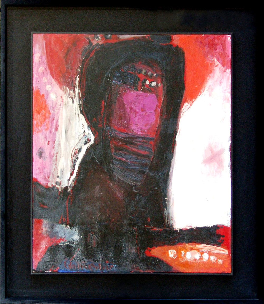 John Christoforou 1921, Londra (Inghilterra) - 2014, Parigi (Francia) - [Inghilterra/Francia] Journal d'un témoin olio su tela 65x54 cm 1963 firma dell'artista in basso a sinistra; opera con cornice certificato di autenticità Picenum; opera pubblicata nel catalogo della mostra esposta presso la Galerie Mathias Fels & Cie di Parigi nel 1963