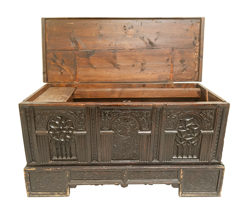 Manifattura tirolese, fine del XIX secolo Cassone dotale in stile neogotico...