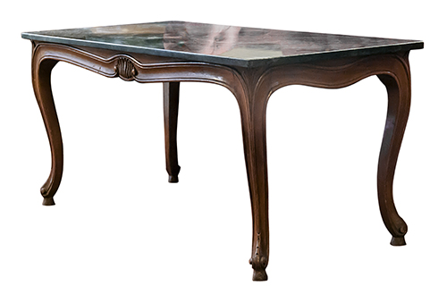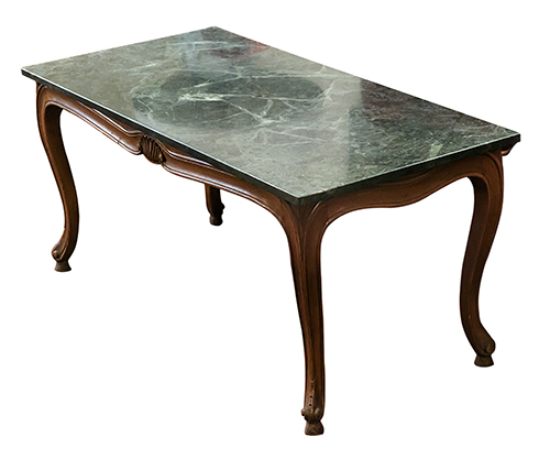 Ernesto Basile (1857-1932), disegno di. Produzione Ducrot (?) Tavolo Liberty da salotto basso Legno intagliato, con piano in marmo verde 47x100x50 cm Il bene è libero da vincoli Condizione supporto: 80% Condizione superficie: 80% Periodo: 1900 - 1960 Categoria: Mobili