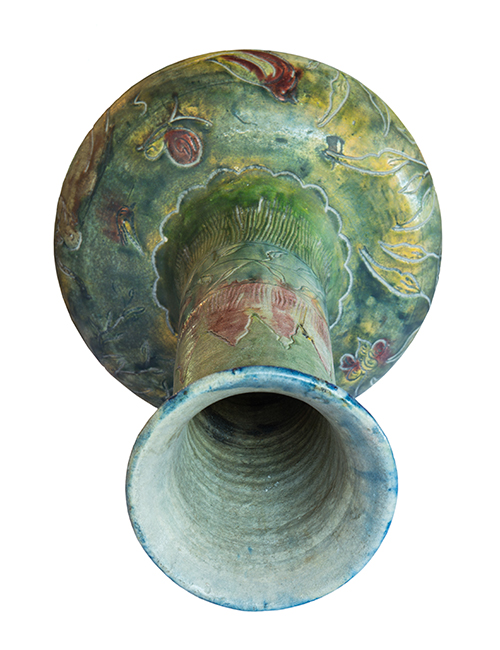 Galileo Chini (1873-1956), ambito di Vaso in maiolica decorato a mano con animali esotici Maiolica incisa e dipinta a mano 54x27x13 cm Il bene è libero da vincoli Condizione supporto: 90% Condizione superficie: 90% Periodo: 1900 - 1960 Categoria: Ceramiche