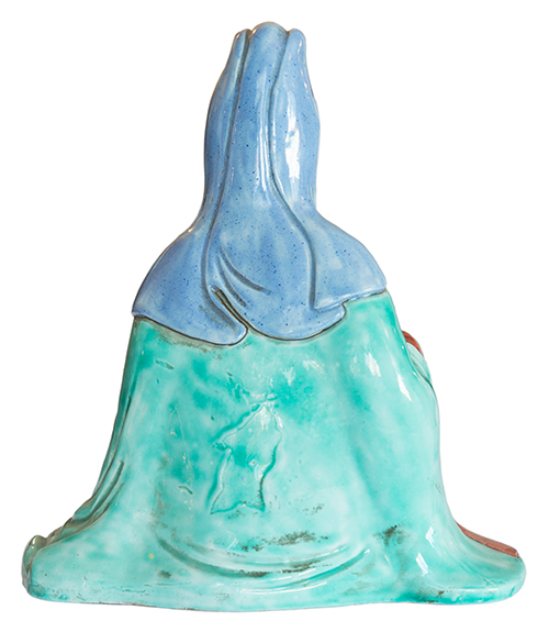 Manifattura cinese Statuetta raffigurante personaggio in meditazione Porcellana dipinta 19,5x16x12 cm Il bene è libero da vincoli Condizione supporto: 90% Condizione superficie: 90% Periodo: 1900 - 1960 Categoria: Ceramiche