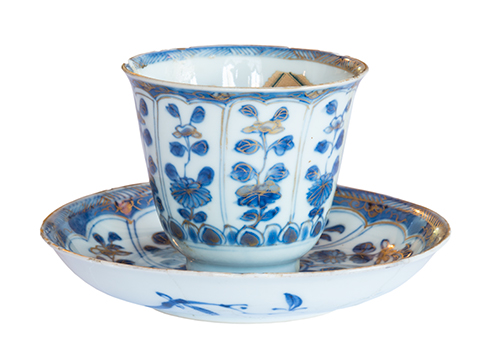 Manifattura francese Tazzina e piattino per caffè, decorati a mano con motivi...