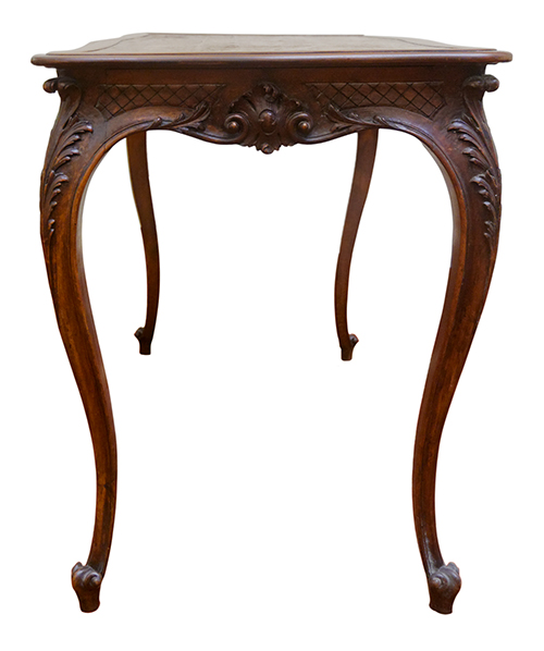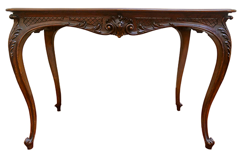 Manifattura siciliana (?), XX secolo Tavolino decorato con motivi floreali Legno intagliato 79x117x64 cm Il bene è libero da vincoli Condizione supporto: 90% Condizione superficie: 60% (usura e danni da urto) Periodo: 1900 - 1960 Categoria: Mobili