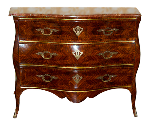 Manifattura siciliana, fine del XIX secolo Cassettiera bombata a 3 vani Fusto in legno di pino impiallacciato in bois de violette e bois de rose e filettato in bois de rose; carta di Spagna e maniglieria in ottone; piano in marmo 98,5x133x64,5 cm Il bene è libero da vincoli Condizione supporto: 80% Condizione superficie: 70% (alcune mancanze e cadute di colore) Periodo: XIX sec. Categoria: Mobili