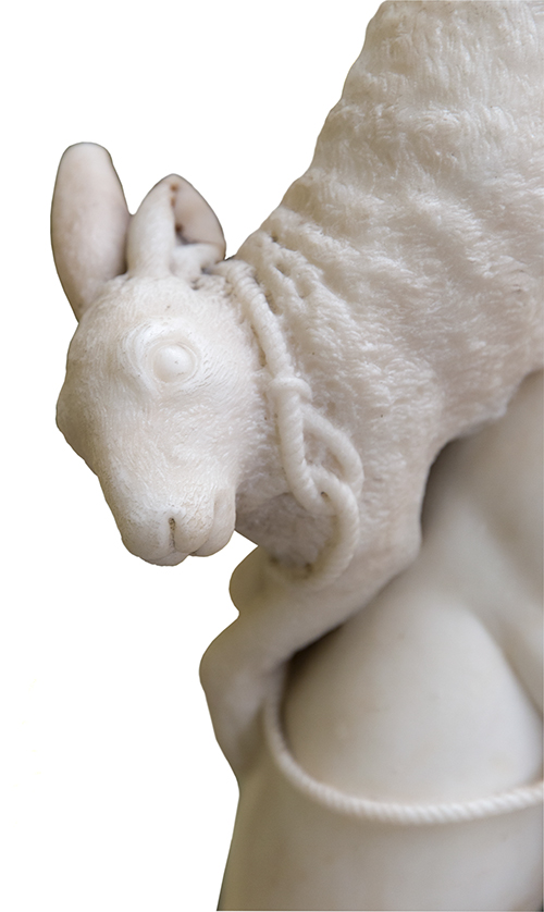 Valerio Villareale (1773-1854) o ambito di Il Genio della Caccia Marmo bianco 100x45 cm Il bene è soggetto a vincolo pertinenziale ex DDS6909 del 16/7/09 - 28 Condizione supporto: 80% (fratture e mancanze, per esempio, l'orecchio del coniglio) Condizione superficie: 90% La deliziosa scultura rappresenta, secondo la tradizione ellenistico romana un fanciullo cacciatore. Virtuosistica la resa del pelame del coniglio (Non si tratta infatti di una lepre: troppo corte le orecchie e inoltre le lepri non esistono in Sicilia) ed egualmente la resa illusionistica del laccio della trappola, come rileva Vittorio De Bonis Periodo: XIX sec. Categoria: Sculture
