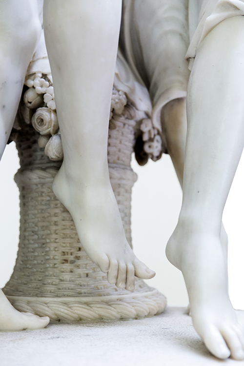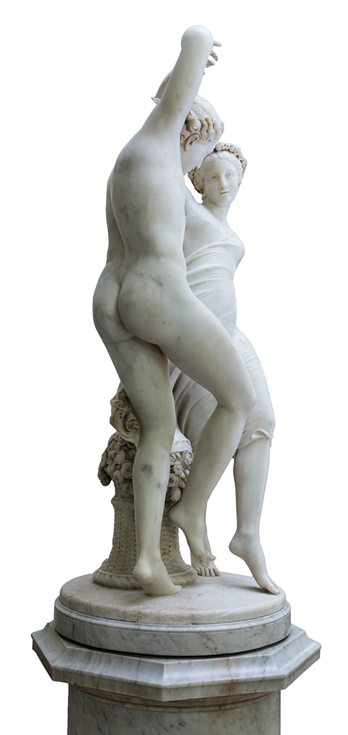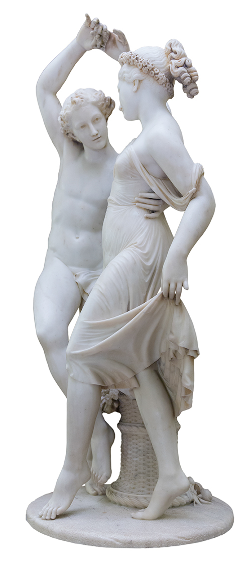 Valerio Villareale (1773-1854) o ambito di Zefiro e la ninfa Cloride Marmo bianco 163x80 cm Il bene è soggetto a vincolo pertinenziale ex DDS6909 del 16/7/09 - 26 Condizione supporto: 80% (fratture malamente restaurate, per esempio, le dita delle mani sollevate) Condizione superficie: 90% Straordinaria la fattura con virtuosistica realizzazione, in parte superiore ai prototipi canoviani, come rileva Vittorio De Bonis Periodo: XIX sec. Categoria: Sculture