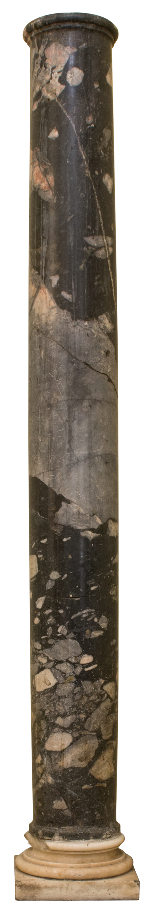 Manifattura siciliana, XVIII-XIX secolo Colonna in marmo grigio Marmo 183x27,5 cm Il bene è libero da vincoli Condizione supporto: 80% (importante frattura e lacuna alla base; fratture e lacune minori) Condizione superficie: 90% (colore) Periodo: XIX sec. Categoria: Mobili