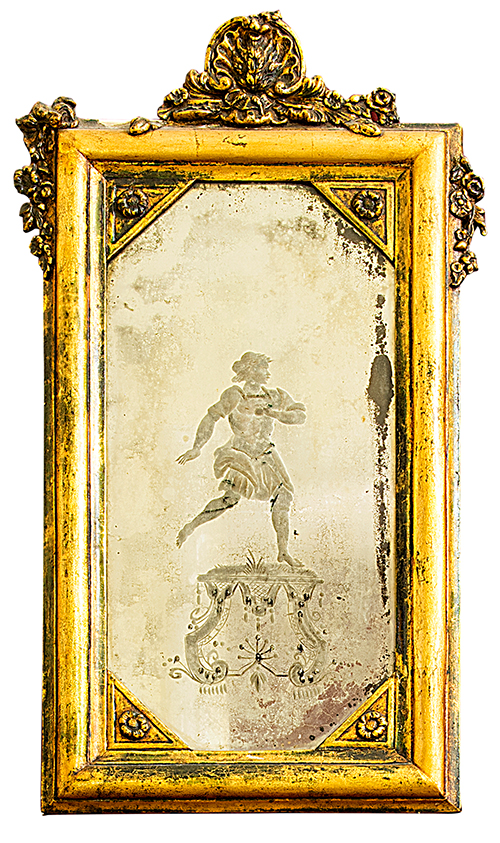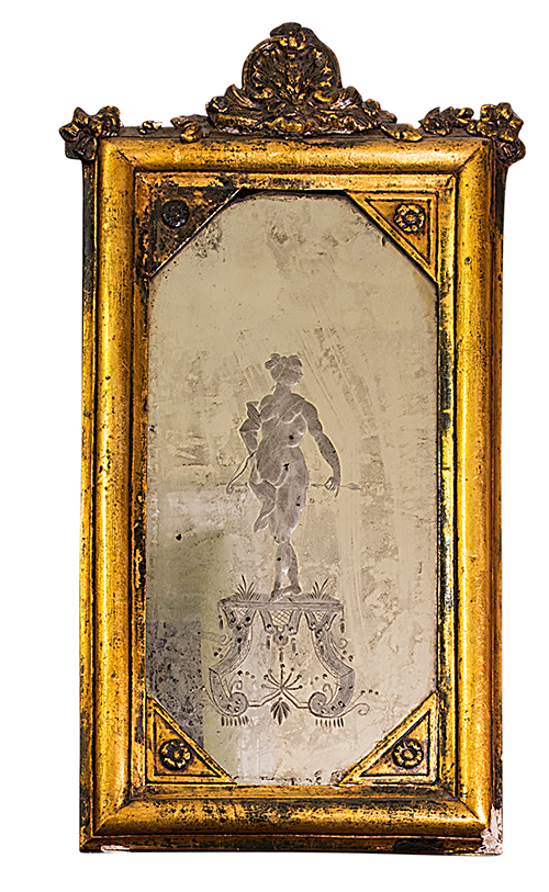 Manifattura italiana, XIX-XX secolo Coppia di specchiere in legno intagliato e dorato Legno, cristallo 69x35x3,4 cm Il bene è libero da vincoli Condizione supporto: 60% (fratture e mancanze) Condizione superficie: 80% (caduta della doratura, depositi aderenti) 2 oggetti Periodo: XIX sec. Categoria: Mobili
