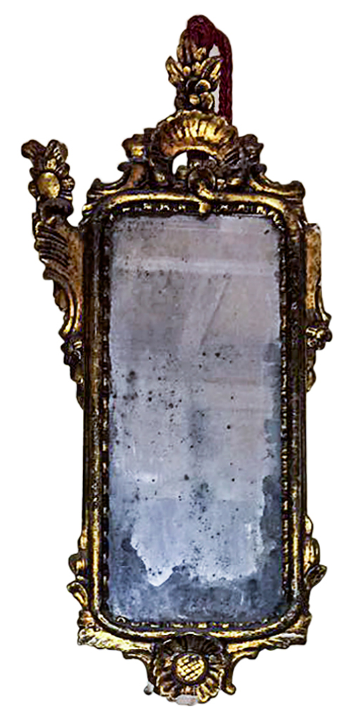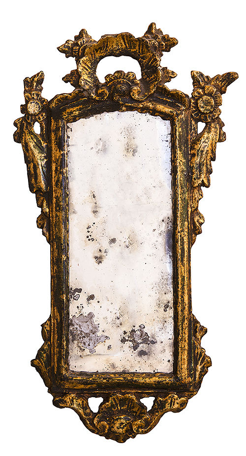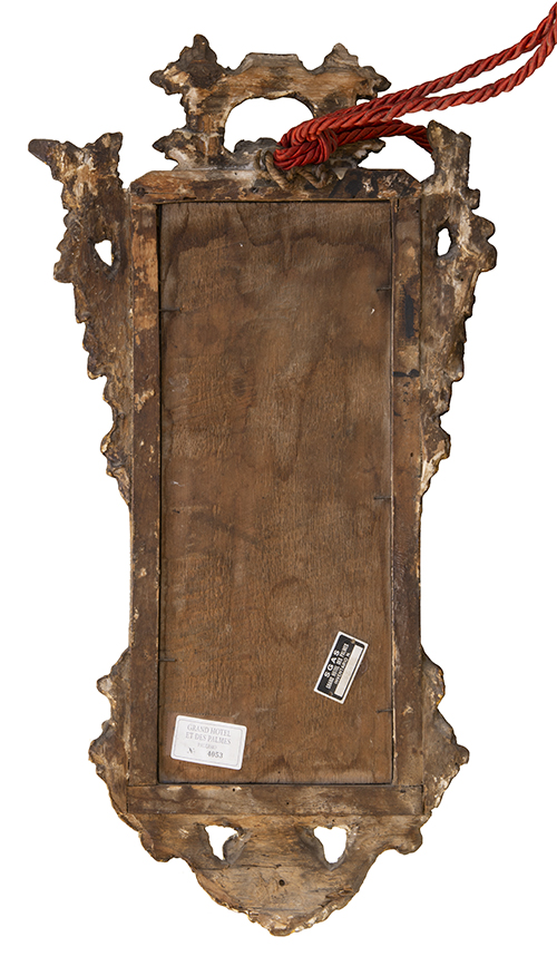Manifattura italiana, inizi del XX secolo Coppia di specchiere in legno intagliato e dorato Legno, cristallo 55,5x29,5x3,5 cm (la maggiore) Il bene è libero da vincoli Condizione supporto: 40% (fratture, danni da umidità, muffe) Condizione superficie: 60% (caduta della doratura, colle, depositi aderenti) 2 oggetti Periodo: 1900 - 1960 Categoria: Mobili