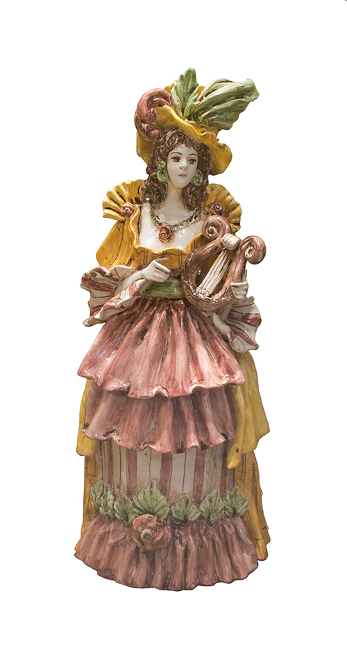 Manifattura siciliana, XX secolo Coppia di figurine portacandele in ceramica Porcellana dipinta Donna: 40x17 cm; Uomo: 40x14 cm Il bene è libero da vincoli Condizione supporto: 80% (fratture e mancanze) Condizione superficie: 90% 2 oggetti le due figure rappresentano un uomo ed una donna in abiti di foggia settecentesca Periodo: 1900 - 1960 Categoria: Ceramiche
