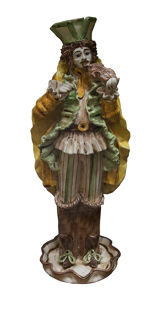 Manifattura siciliana, XX secolo Coppia di figurine portacandele in ceramica...