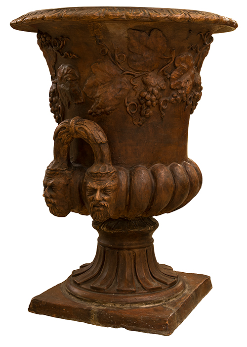Produzione meridionale (?), XX secolo Coppia di crateri portavaso Ceramica patinata 90x72 cm Il bene è libero da vincoli Condizione supporto: 80% Condizione superficie: 70% (sbeccature e perdite di colore) 2 oggetti Periodo: 1900 - 1960 Categoria: Ceramiche
