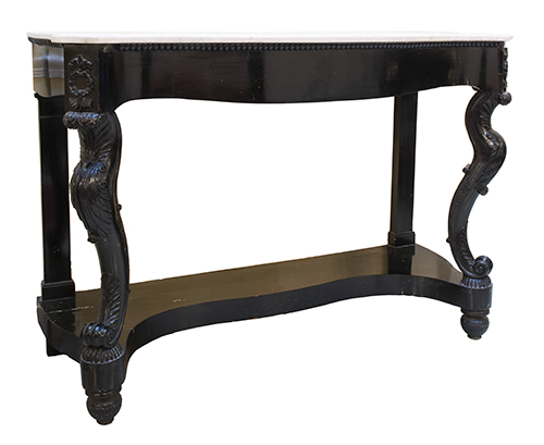 Manifattura siciliana, 1910-1930 Consolle Legno, marmo bianco 103x147x53,5 cm Il bene è libero da vincoli Condizione supporto: 80% (danni da umidità e da urto, in particolare i piedi) Condizione superficie: 90% Periodo: 1900 - 1960 Categoria: Mobili
