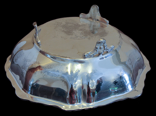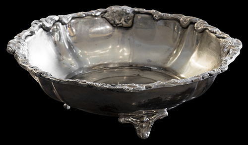 Manifattura italiana, 1980 ca. Centrotavola portafrutta Lega metallica placcata argento 10x23 cm Il bene è libero da vincoli Condizione supporto: 90% Condizione superficie: 80% (ossidazioni sulla patina argentata) Caratterizzato da profilo lobato e costolato, poggia su quattro piedini Periodo: post 1960 Categoria: Soprammobili altro materiale pregiato