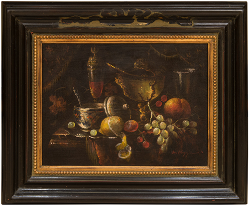 Produzione italiana, 1980 ca. Natura morta con pesche Stampa su tela 40x30 cm Il bene è libero da vincoli Condizione supporto: 80% Condizione superficie: 70% Periodo: post 1960 Categoria: Stampe