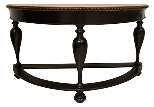 Produzione italiana, 1960 ca. Consolle da parete a demilune Legno ebanizzato ed a tinta ciliegio 82x151x65,5 cm Il bene è libero da vincoli Condizione supporto: 90% Condizione superficie: 80% (lievi segni di usura, danni da urto) Periodo: post 1960 Categoria: Mobili