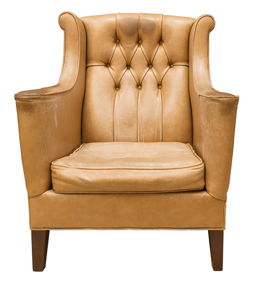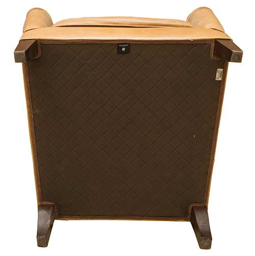 Produzione italiana, 1960 ca. Lotto di 4 poltrone Legno, cuoio, materiali tessili 90x68x78 cm Il bene è libero da vincoli Condizione supporto: 70% Condizione superficie: 60% (rotture, graffi e macchie) 4 oggetti Poltrone rivestite in cuoio Periodo: post 1960 Categoria: Mobili