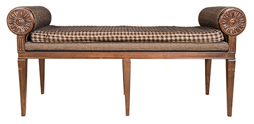 Produzione italiana, 1960 ca. Lotto di 7 panche Legno, stoffa 66,5x140x45,5 cm Il bene è libero da vincoli Condizione supporto: 70%-74% Condizione superficie: 50%-80% 7 oggetti Panche in legno intagliato, rivestite in stoffa Periodo: post 1960 Categoria: Mobili