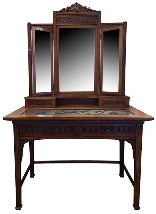 Manifattura siciliana (?), I metà del XX secolo (?) Mobile da toilette Legno intagliato, vetro 194x116x68 cm Il bene è libero da vincoli Condizione supporto: 90% Condizione superficie: 80% Mobile da toilette con specchiera a tre pannelli e tre vani sottostanti Periodo: 1900 - 1960 Categoria: Mobili