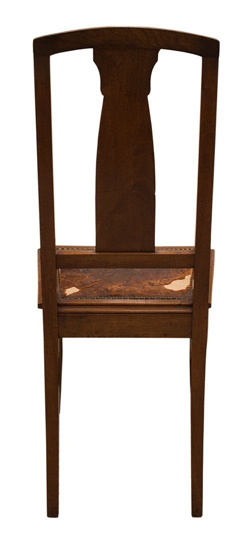 Manifattura siciliana, I metà del XX secolo Tre sedie Legno intagliato e cuoio 98x45x41 cm Il bene è libero da vincoli Condizione supporto: 80% Condizione superficie: 80% 3 oggetti Sedie con schienale a cartella a lira e decorazioni a motivo vegetale Periodo: 1900 - 1960 Categoria: Mobili