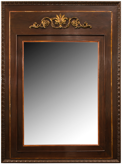 Manifattura siciliana (?), II quarto del XX secolo Specchiera rettangolare Legno intagliato, bronzo 158x118,5x4 cm Il bene è libero da vincoli Condizione supporto: 80% Condizione superficie: 70% (perdite della doratura) Specchiera con fregio floreale posto sulla cimasa Periodo: 1900 - 1960 Categoria: Mobili