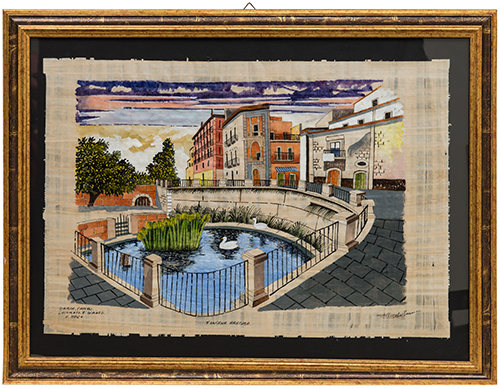 Lotto 659 | Anonimo, metà del XX secolo La fonte Aretusa Tempera su papiro 63x43 cm Il...