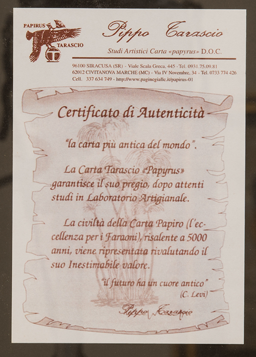 Anonimo, metà del XX secolo La fonte Aretusa Tempera su papiro 63x43 cm Il bene è libero da vincoli Condizione supporto: 90% Condizione superficie: 90% Periodo: 1900 - 1960 Categoria: Dipinti