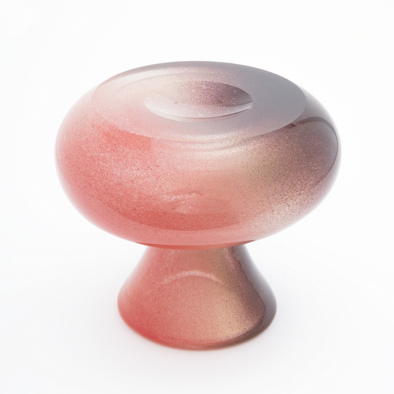 . -. Cm 16,00 x 14,00. Vetro trasparente e oro con sfumatura dal rosso all'ametista della serie “Polveri”, per Seguso Vetri D’arte 1953/54. Per la tecnica vedi; “I vetri di Archimede Seguso” pag.99
