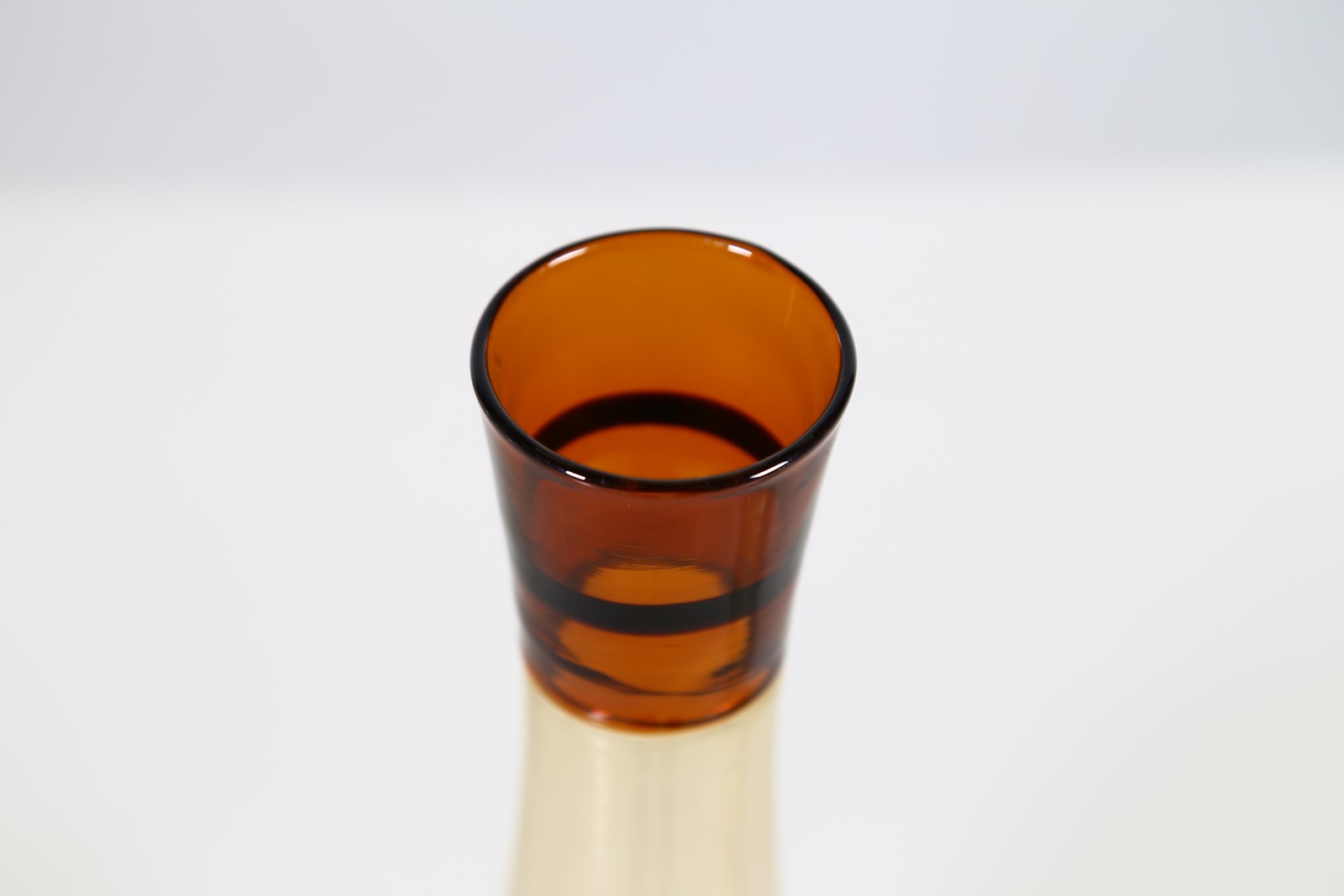 . . Cm 11,50 x 30,50 x 11,50. Straw-coloured blown glass with tea-coloured incalmo neck and dark central band, from the "Colletti" series for Venini, 1961. Model number 512.3. Publications: Venini, Catalogo Verde, pg. 25.