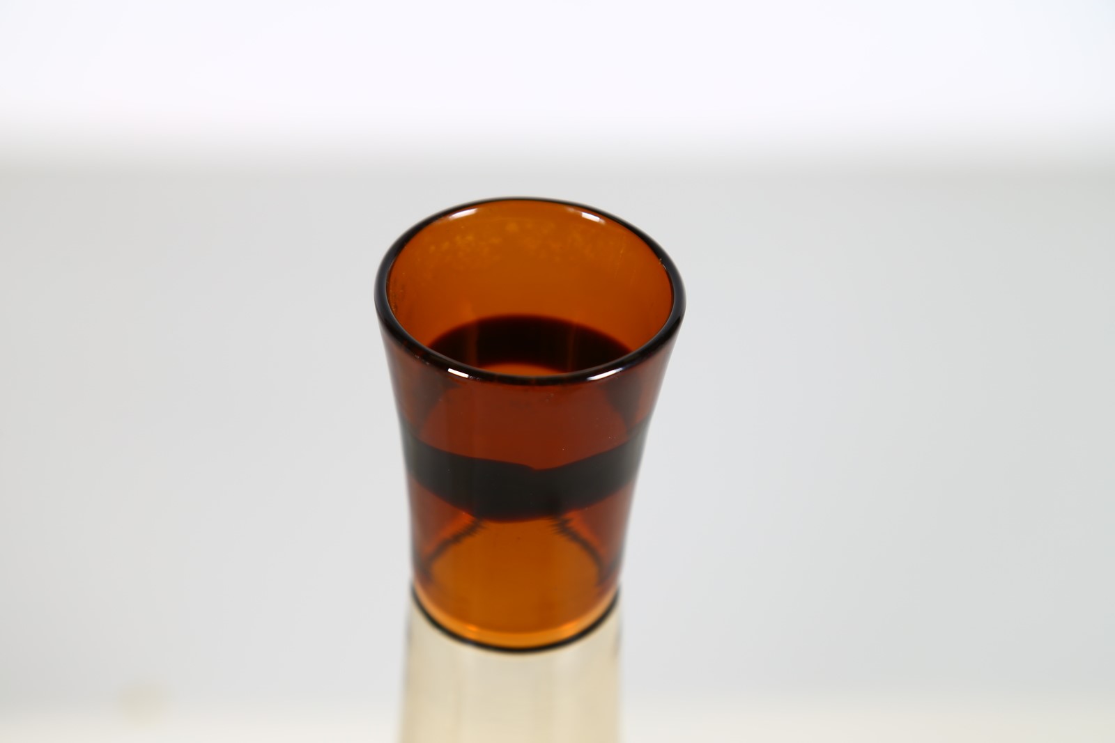 . . Cm 11,00 x 31,00 x 11,00. Straw-coloured blown glass with tea-coloured incalmo neck and dark central band, from the "Colletti" series for Venini, 1961. Model number 512.3. Publications: Venini, Catalogo Verde, pg. 25.